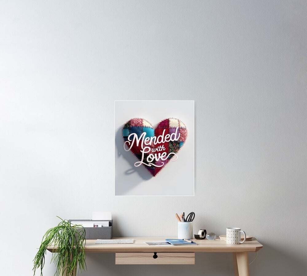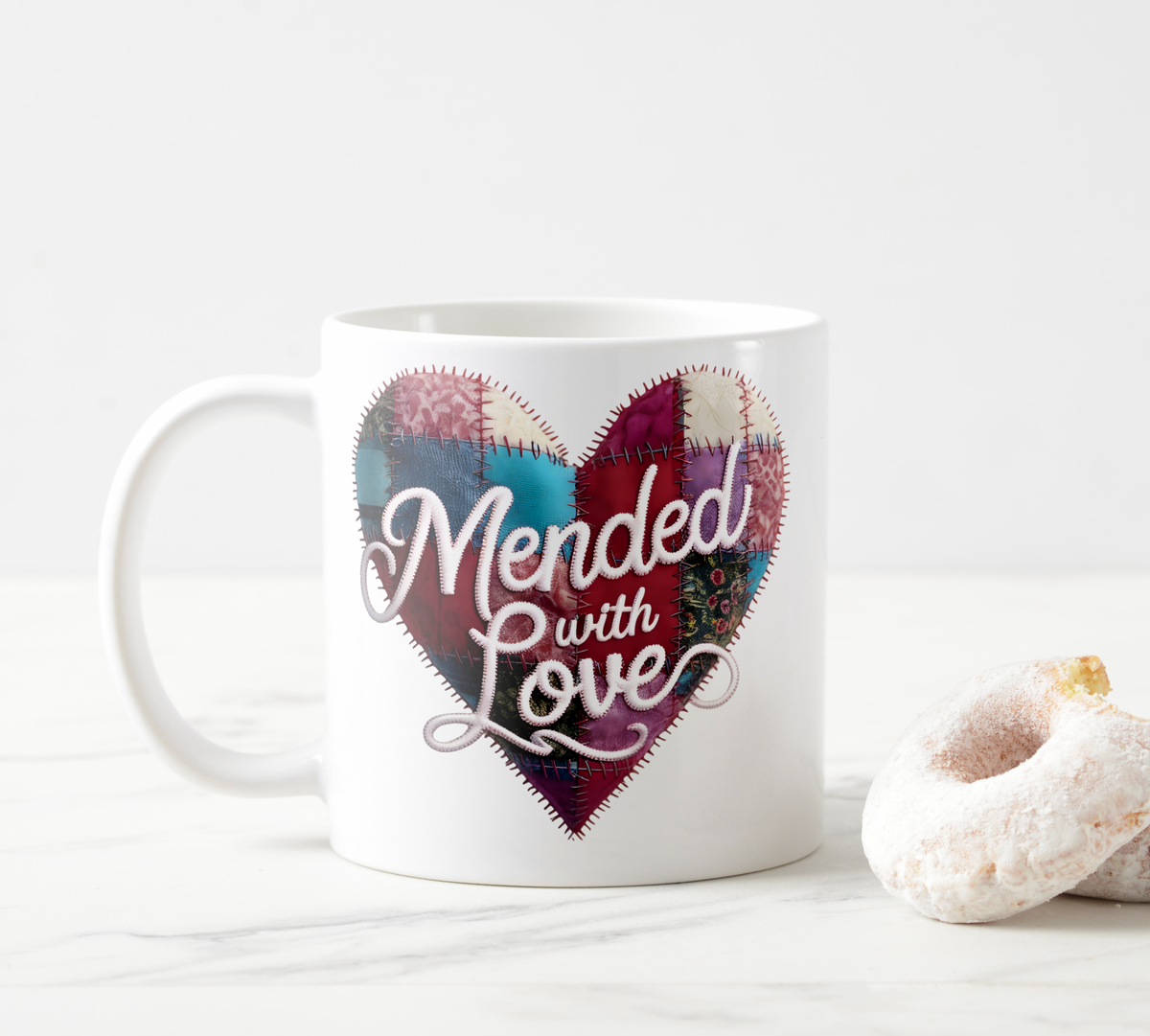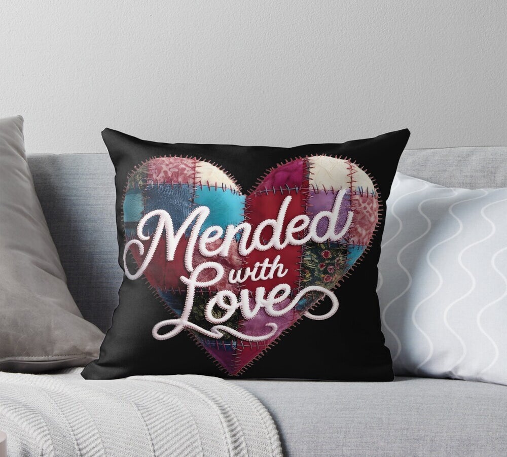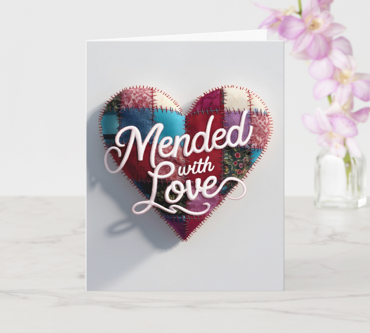 Mended with Love celebrates the strength found in healing, showing a stitched heart that wears its scars with pride.