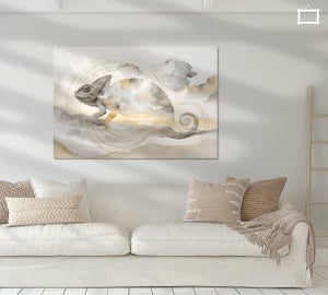 In this serene artwork, the chameleon embodies Nyame, the celestial creator god of the Akan tradition. Drifting through clouds and light, it becomes a bridge between transformation and divinity. Its shifting hues and delicate presence mirror the wisdom of adaptability — the sacred art of changing form while staying true to one’s essence. A tribute to quiet metamorphosis and the infinite skies within.
