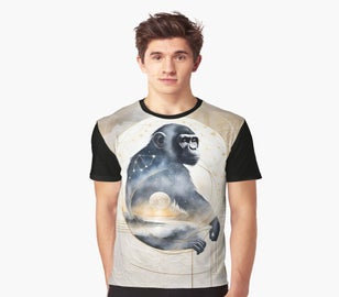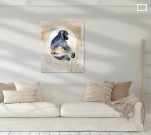 In this mystical composition, the spirit of Thoth, the Egyptian god of wisdom, magic, and time, comes alive. The chimpanzee acts as his messenger — a symbol of insight, communication, and the bridge between instinct and intellect. Golden constellations intertwine with ancient hieroglyphs, as if the stars themselves whisper stories. This piece invites stillness, reflection, and the discovery of inner wisdom that transcends words.