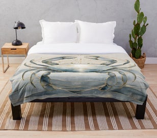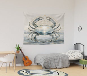 In this refined artwork, the legend of Karkinos comes alive — the celestial crab who served the goddess Hera and was placed among the stars. The ocean waves reflect the eternal rhythm of ebb and flow, symbolizing emotion, protection, and intuitive strength. Golden lines and soft blue tones merge tranquility and depth into a dreamy harmony of water and light.