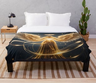 A radiant angel of pure light and gold unfolds her wings in an aura of warmth and serenity. The gentle glow, flowing lines, and sparkling details evoke a sense of protection and celestial beauty. This artwork celebrates the union of strength and grace — an ode to inner peace and the magic of light.