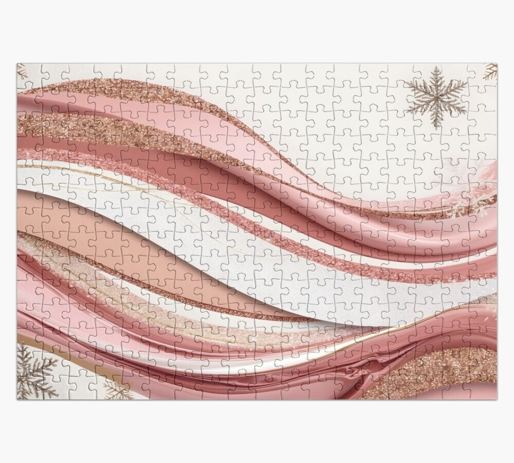 Abstract Pinkmas Waves brings a modern and elegant Christmas to life. Soft pink tones and rose-gold accents flow together in a dreamy winter scene.